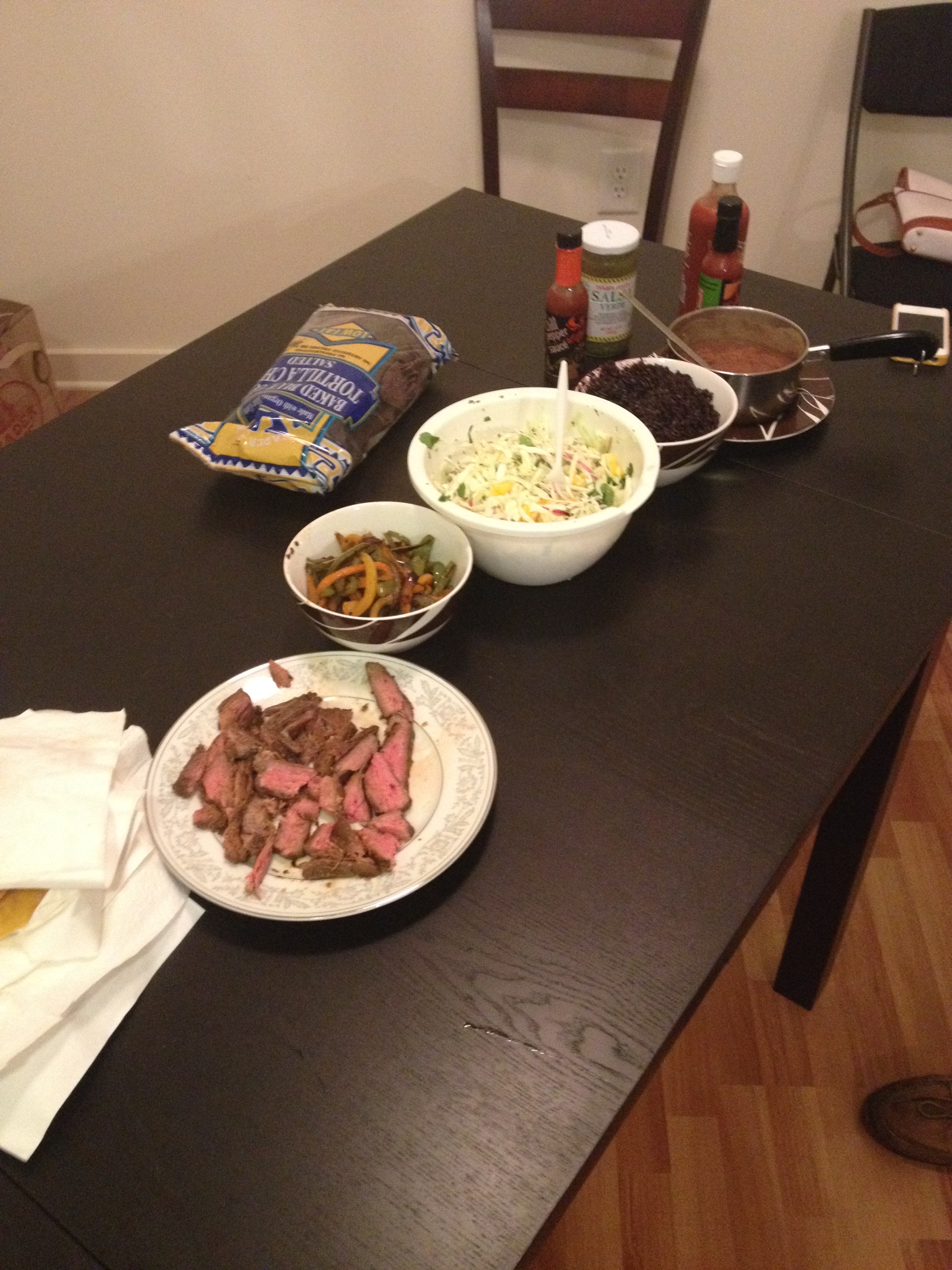 1. Make the cilantro pesto: Add the garlic, cilantro, walnuts, some fresh cracked pepper, and 2 TBS olive oil to the bowl of a small food processor. Pulse until not quite a paste, but everything is mixed evenly. Then, slowly drizzle in your olive oil. I didn’t end up needing the whole 1/3 of a cup, but I do like my pesto thicker. After you’ve finished pulsing, mix in your feta (don’t pulse in the food processor, just slowly mix into the mixture)