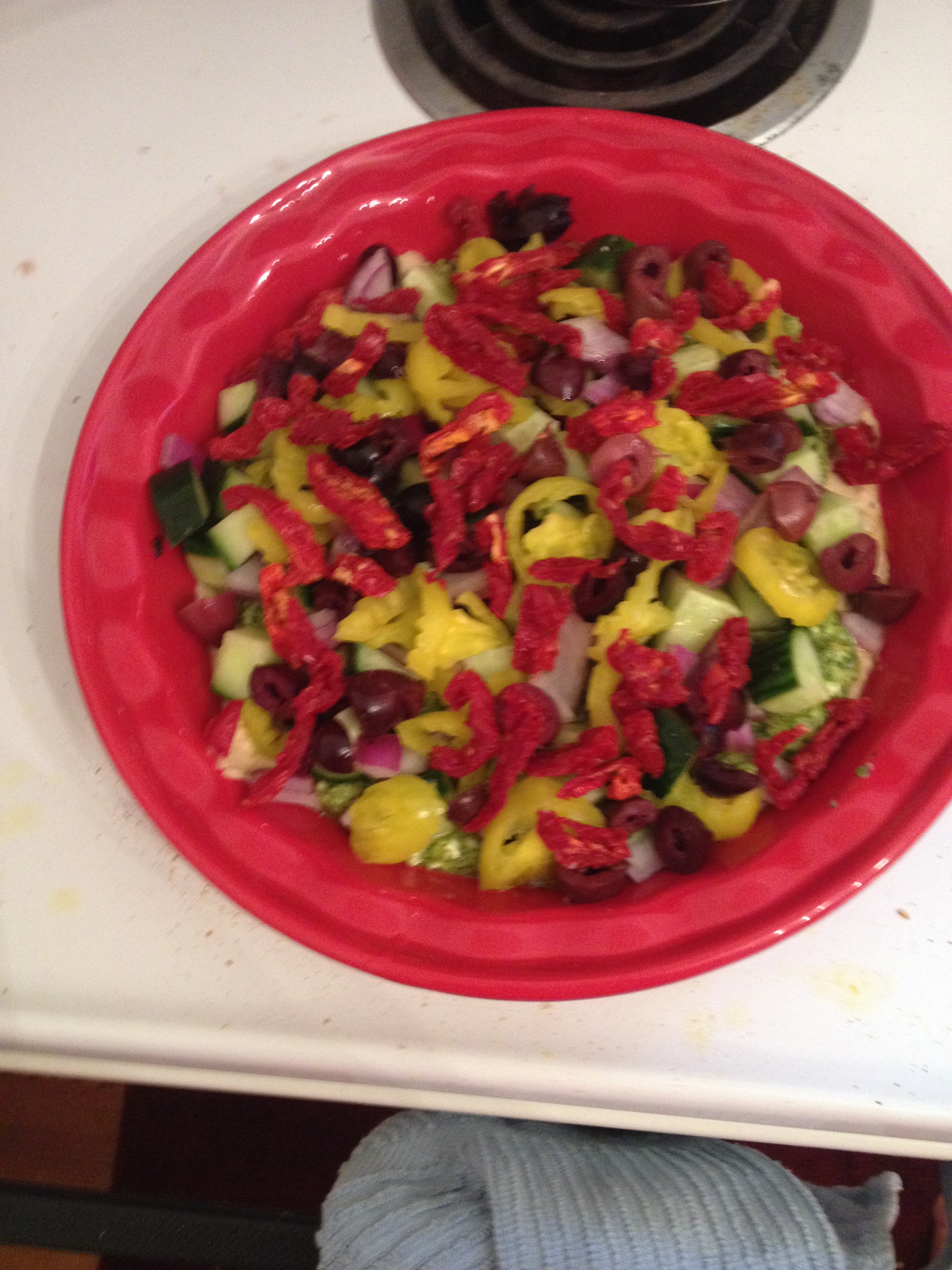 Mediterranean 7-layer dip, adapted from Annie’s Eats
