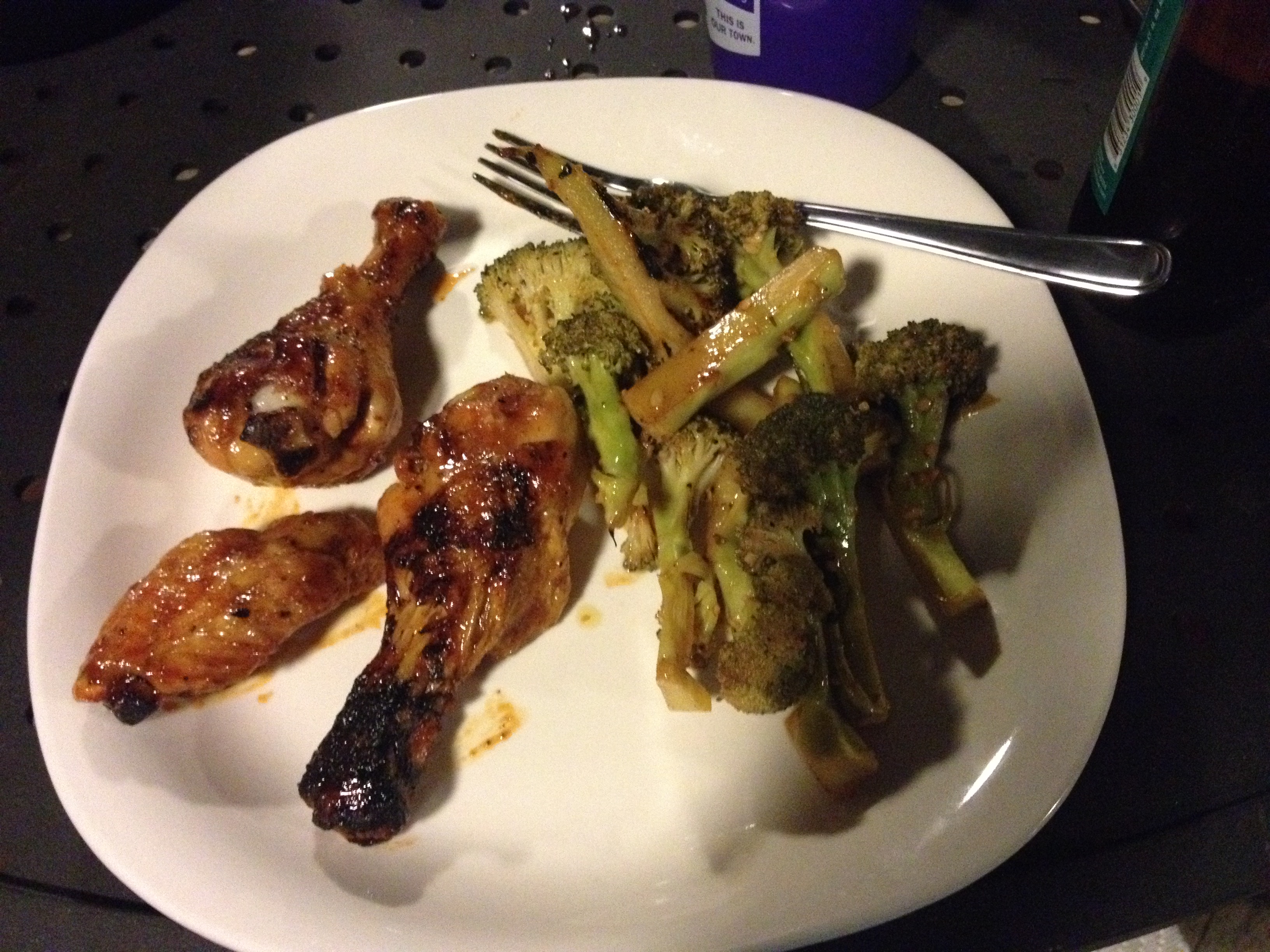 Sriracha Honey Chicken Wings and Garlic Grilled Broccoli