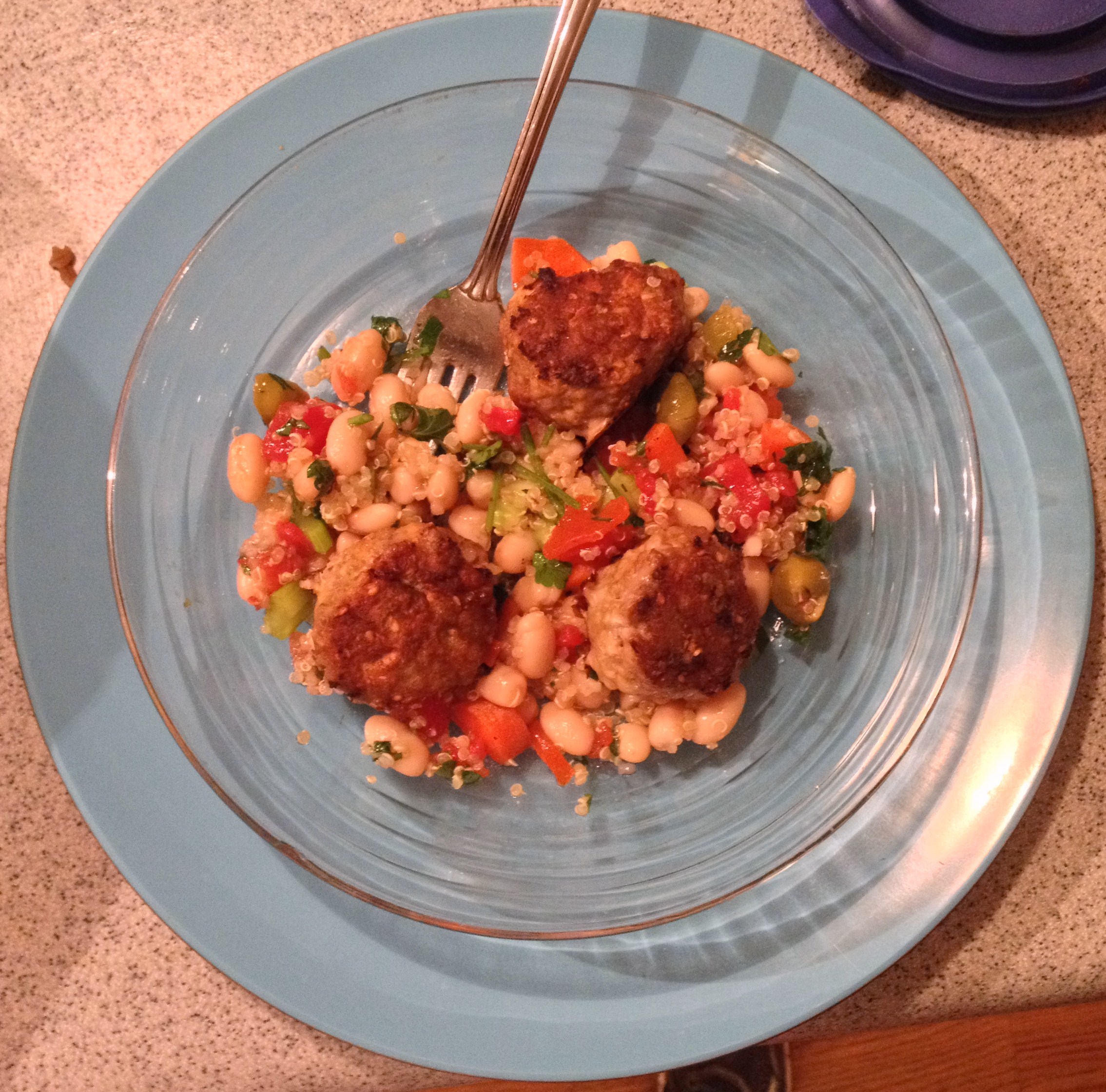 Here’s a few things that differed in our rendition of this meal. 1) Lenzie and Trent brought those amazing fake-cakey cookies with the themed frosting instead of having cake, 2) We kept to their use of bone-in chicken except for the breasts which Spencer deboned , 3) there was no visit to the local farm and 4) instead of having Tyler Florence help guide the cooking process, I had 3 twenty-something guys and 2 parents all pitch in!