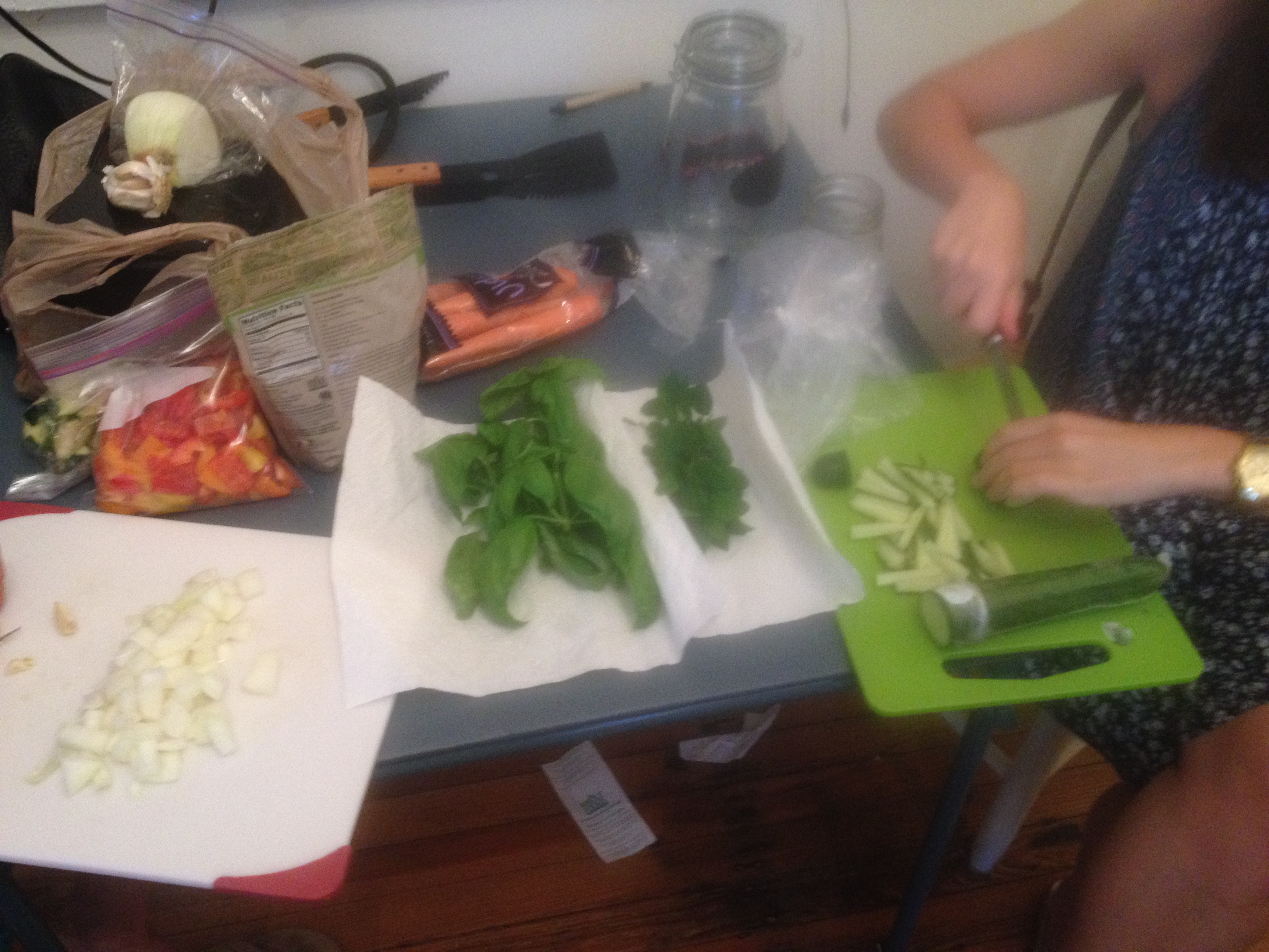 In this case, I started my part while Andrew and William were already working their magic with some delicious avocado mac ‘n’ cheese and a blackberry strawberry kale salad. With little kitchen space, the three of us managed a meal of epic proportions without any major accidents, burned food, or overcookery of sorts.