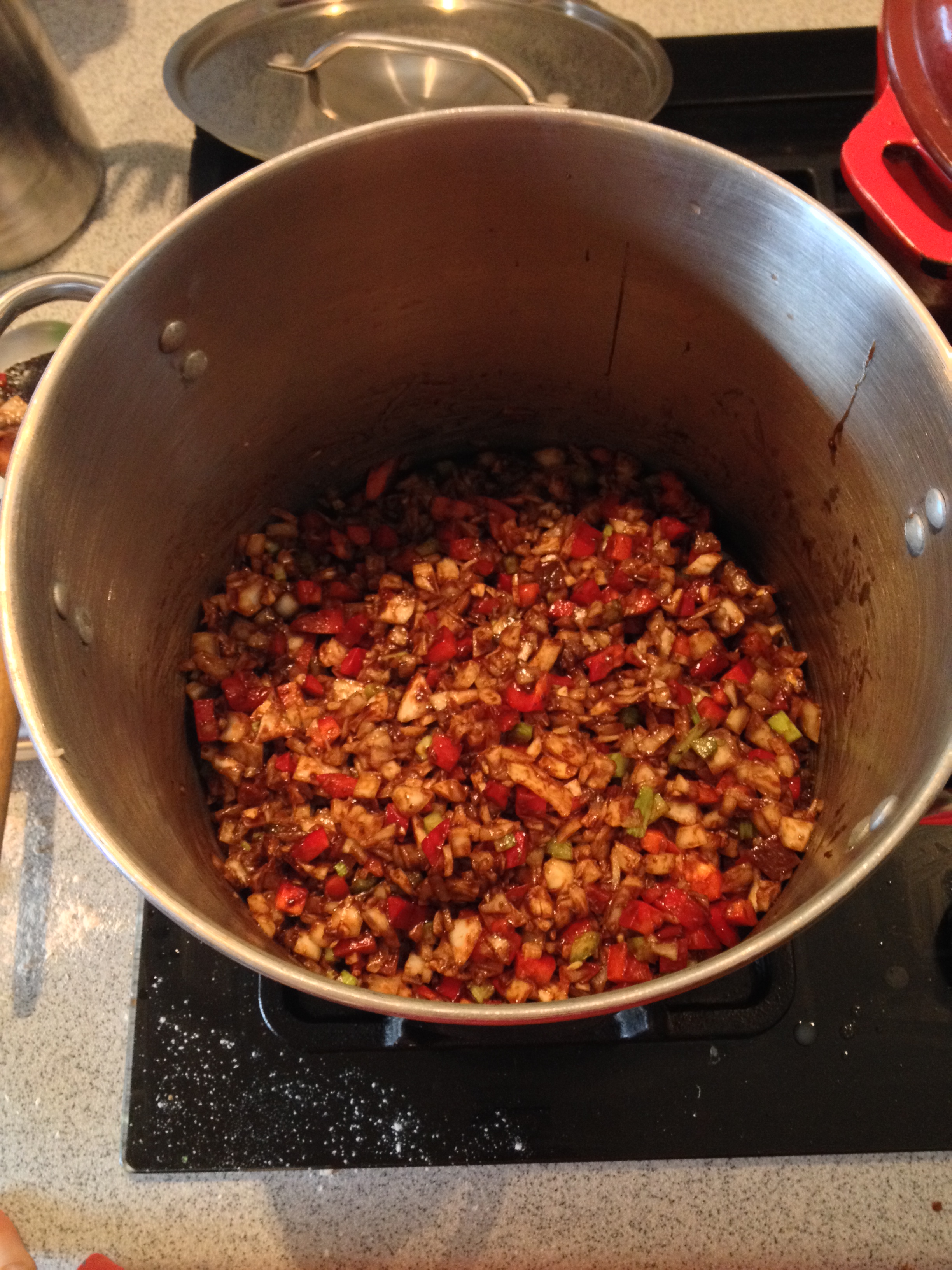 1 medium red bell pepper, chopped fine with all the seeds and ribs removed