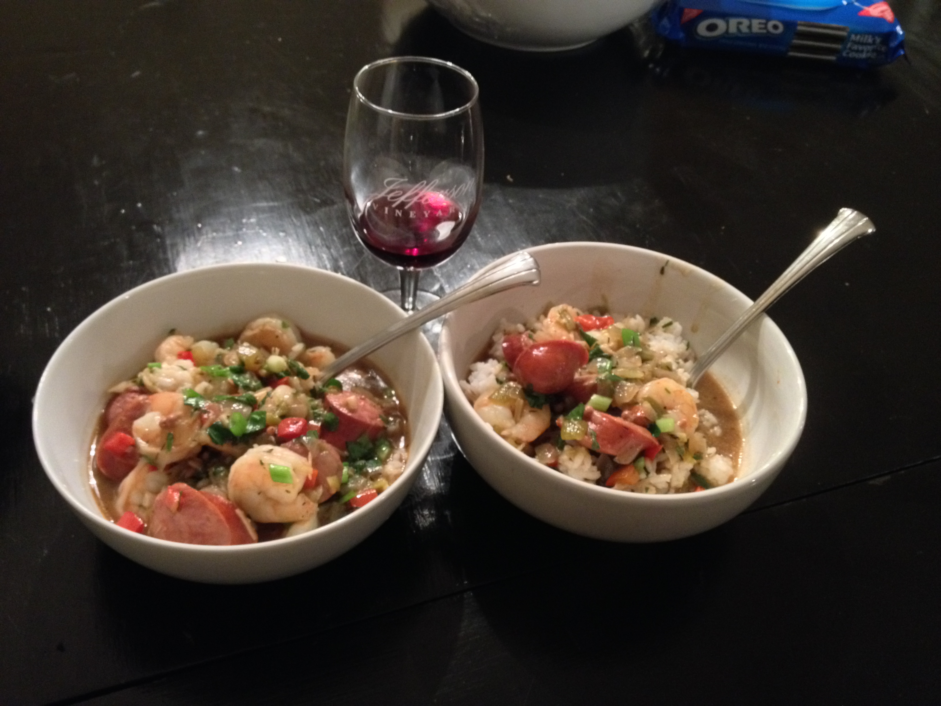 Shrimp and Andouille Gumbo, adapted from The New Best Recipe ( I doubled it for a dinner party)